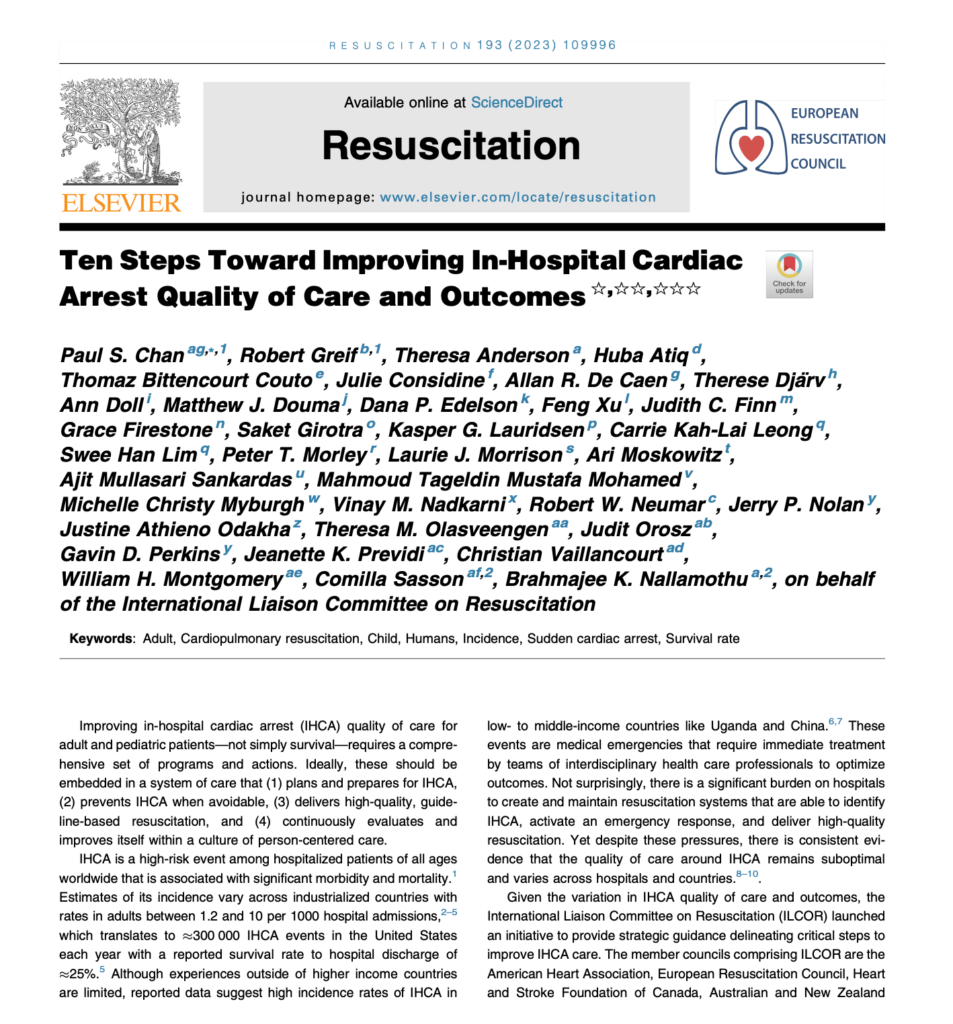 Dit artikel, “Ten Steps Toward Improving In-Hospital Cardiac Arrest (IHCA) Quality of Care and Outcomes” (Resuscitation, 2023), beschrijft een internationaal consensuskader voor het verbeteren van de zorg rondom reanimaties in het ziekenhuis. Het richt zich op een systematische aanpak van preventie, uitvoering en evaluatie om de overleving en kwaliteit van zorg te verbeteren.